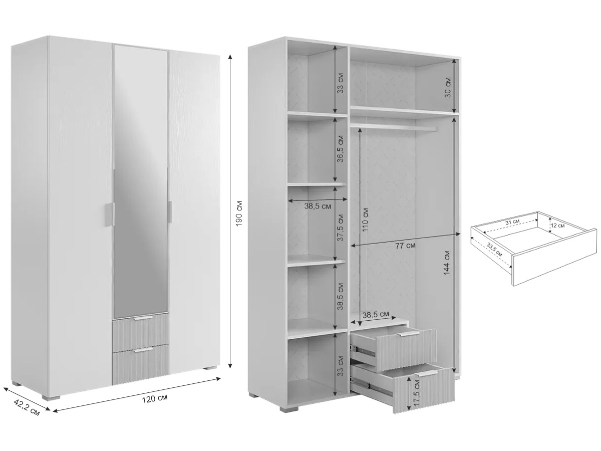 Цвет: белое дерево/серый (эмаль)