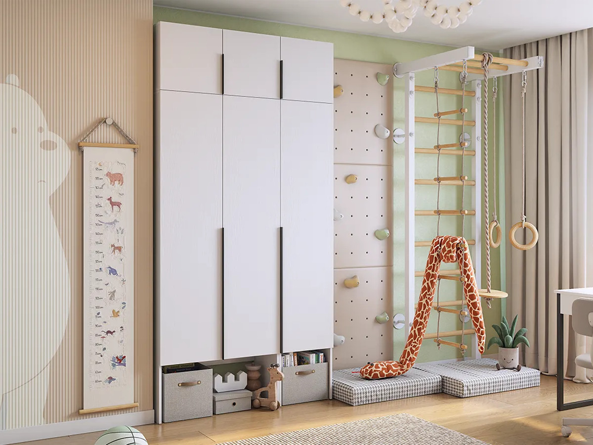 Шкаф трехдверный с антресолью Баско К5 белое дерево
