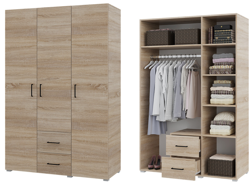 - Шкаф трехстворчатый 2 ящика Victor Сонома