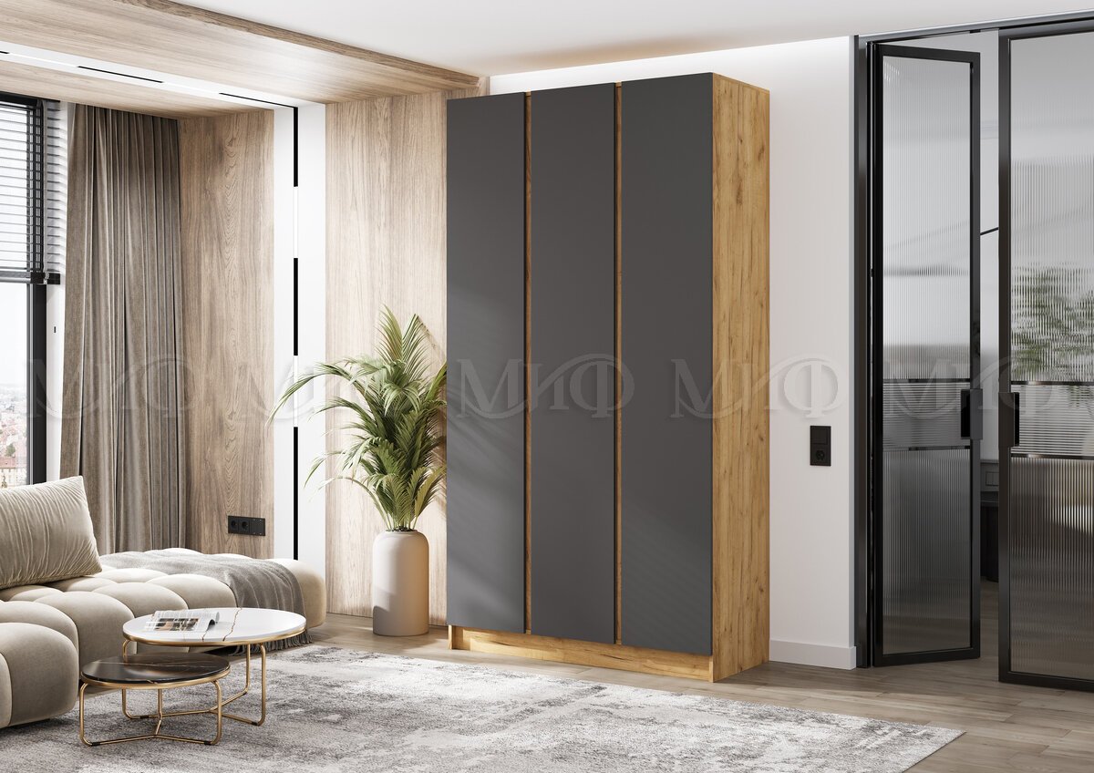 - Шкаф трехстворчатый Келвин (1200) Графит, Дуб Крафт-вставка дуб крафт