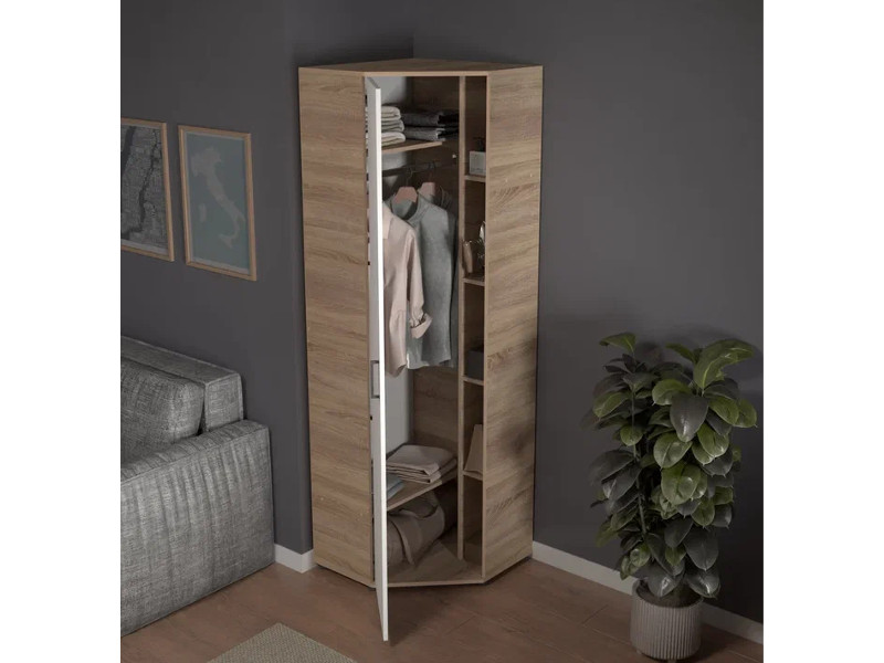 - Шкаф угловой со штангой и полками арт. 522 дуб сонома/белый