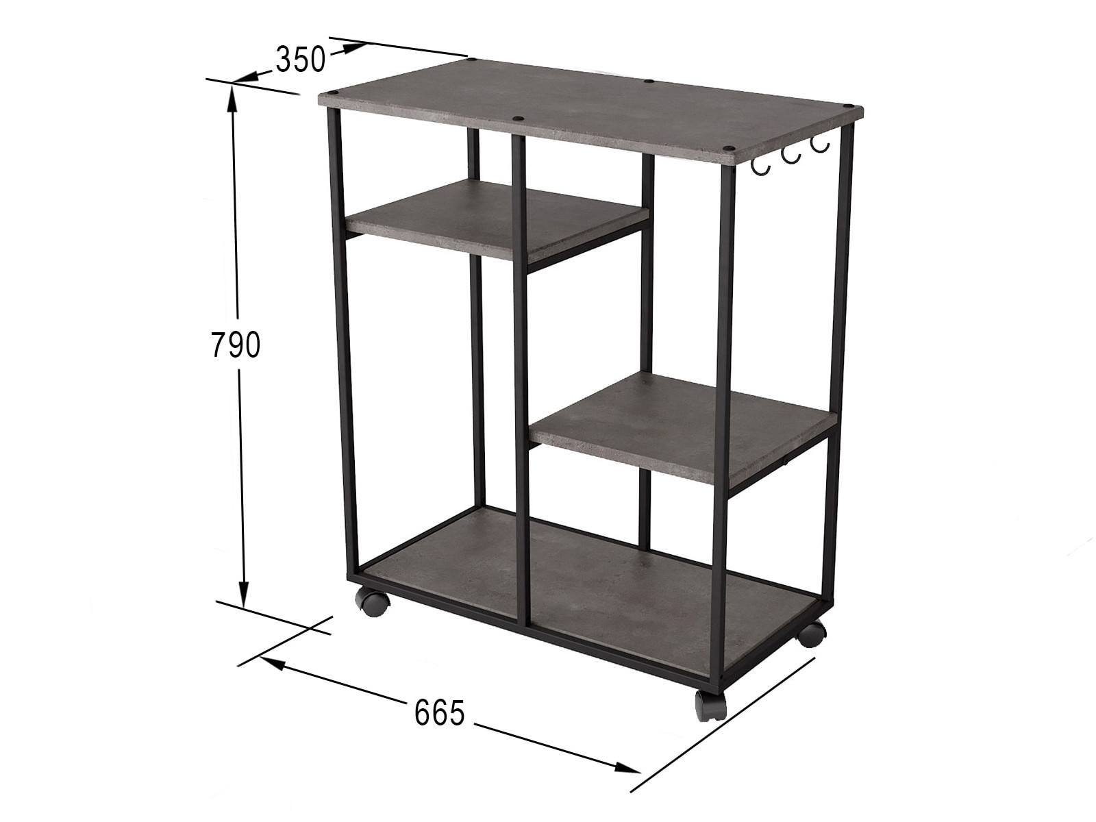Разборный каркас консоли выполнен из профильной трубы, столешница, полки и основание- из прочного и влагостойкого материала МДФ, облицованного декоративным покрытием в современном цветовом решении.