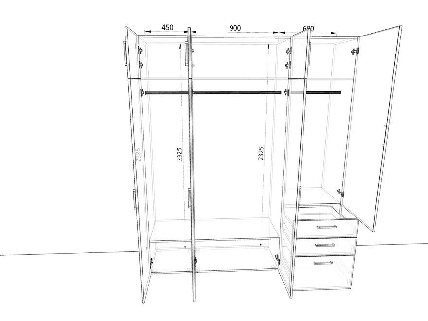 Размер ШхГхВ: 1950х500х2325 мм