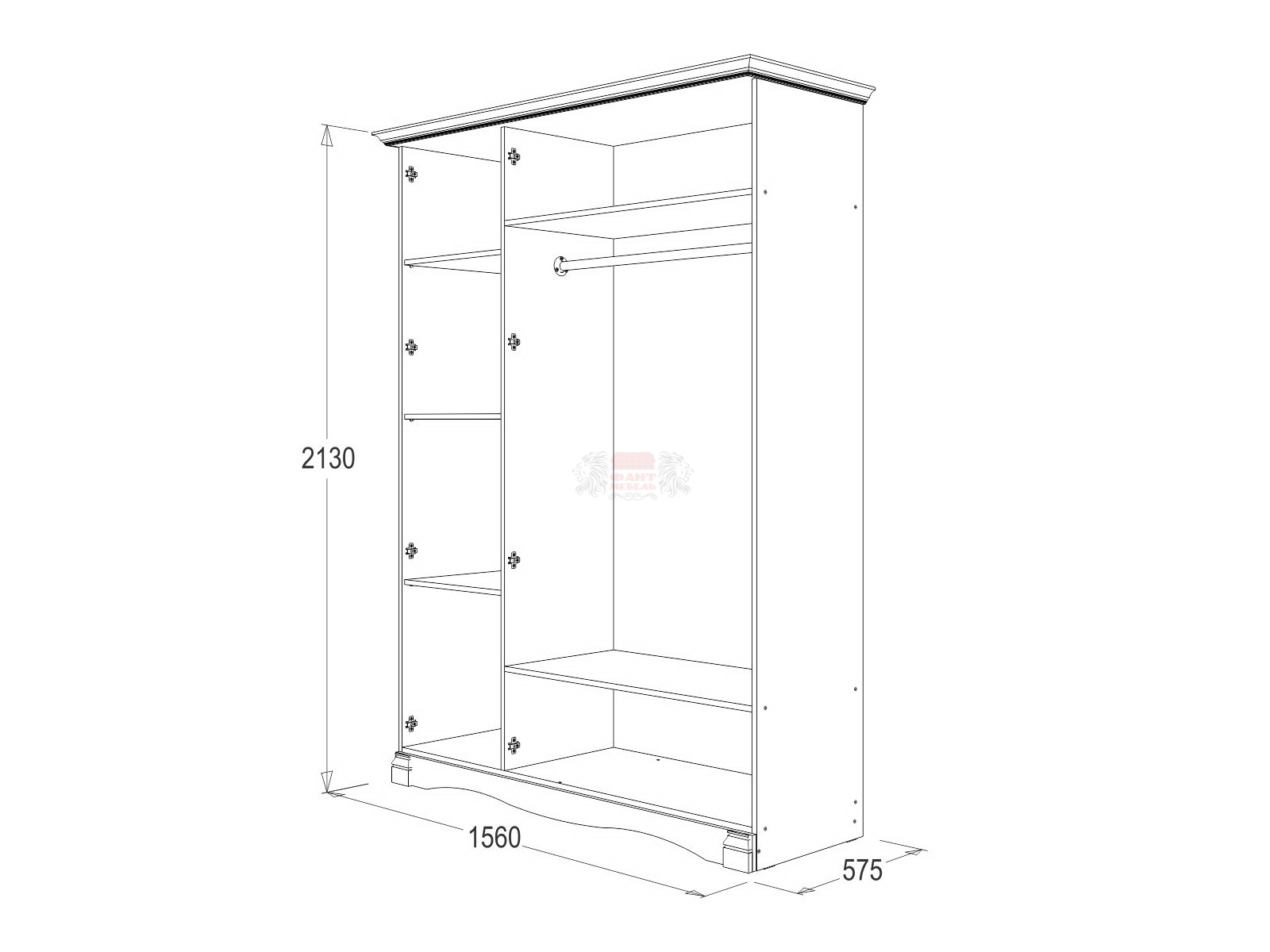 Размер В*Ш*Г 2130х1560х575 мм