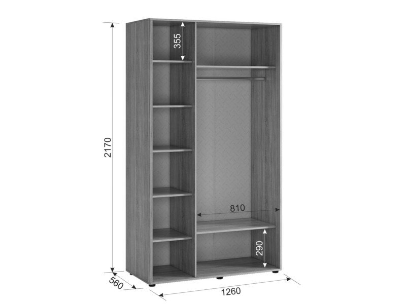 Размер: ш=1260 мм, г=566 мм, в=2170 мм